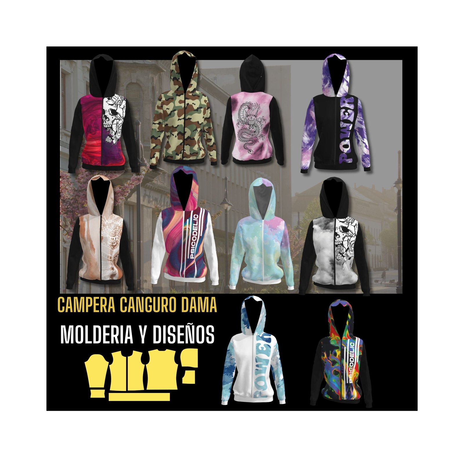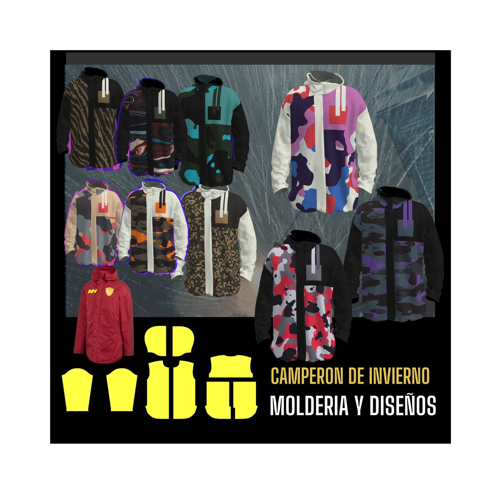 Bonus track: Cápsulas con moldes y diseños de camperas de invierno, buzos de superhéroes, buzos deportivos de cuello alto, pijamas, camperas de dama y ¡1500 vectores de prendas deportivas!